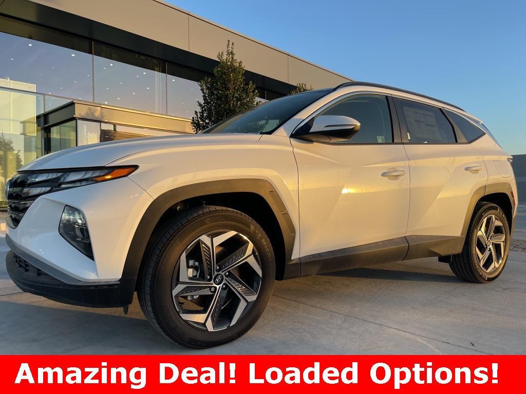 Tucson Hybrid SEL Convenience, 4D Sport Utility, I4, 6-Speed Automatic, AWD, White Pearl, Black, 3.32 Axle Ratio, 4-Wheel Disc Brakes, 6 Speakers, ABS brakes, Air Conditioning, Alloy wheels, AM/FM radio: SiriusXM, Apple CarPlay & Android Auto, Auto High-beam Headlights, Auto-dimming Rear-View mirror, Automatic temperature control, Brake assist, Bumpers: body-color, Cargo Cover, Cargo Tray, Carpeted Floor Mats, Delay-off headlights, Driver door bin, Driver vanity mirror, Dual front impact airbags, Dual front side impact airbags, Electronic Stability Control, Emergency communication system, Exterior Parking Camera Rear, First Aid Kit, Four wheel independent suspension, Front anti-roll bar, Front Bucket Seats, Front Center Armrest, Front dual zone A/C, Front reading lights, Fully automatic headlights, H-Tex Seat Trim, Heated door mirrors, Heated Front Bucket Seats, Heated front seats, Illuminated entry, Low tire pressure warning, Navigation System, Occupant sensing airbag, Option Group 01, Outside temperature display, Overhead airbag, Overhead console, Panic alarm, Passenger door bin, Passenger vanity mirror, Power door mirrors, Power driver seat, Power Liftgate, Power moonroof, Power steering, Power windows, Radio data system, Radio: AM/FM/HD Audio System, Rear anti-roll bar, Rear reading lights, Rear seat center armrest, Rear side impact airbag, Rear window defroster, Rear window wiper, Remote keyless entry, Security system, Speed control, Split folding rear seat, Spoiler, Steering wheel mounted audio controls, Tachometer, Telescoping steering wheel, Tilt steering wheel, Traction control, Trip computer, Turn signal indicator mirrors, Variably intermittent wipers, Wheel Locks, Wheels: 19" x 7.5J" Machine-Face Finish Alloy.